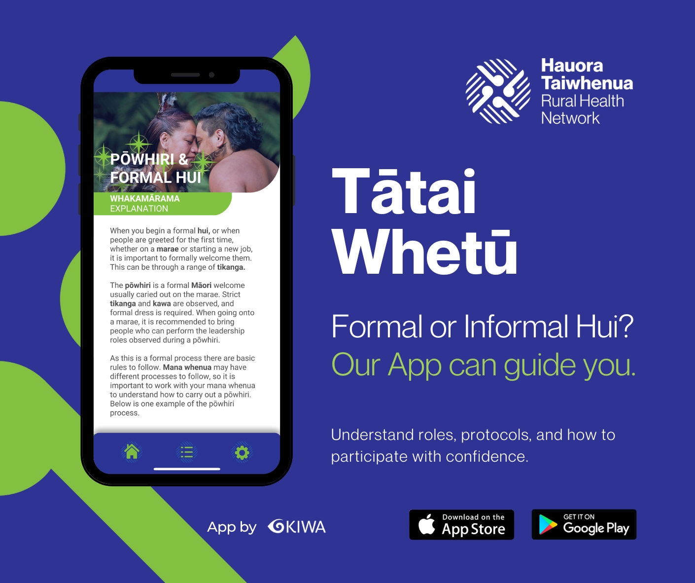 A huge thank you to Spark for their support and for creating a platform where students, professionals, and innovators can connect, learn, and inspire each other. I look forward to taking the lessons from the Spark Accelerate conference into my own journey in healthcare and contributing to the ongoing effort to strengthen rural health in Aotearoa | | | | | | | | Membership Benefit - Tatai Whetu App | | One of the many benefits of being a Hauora Taiwhenua member is access to unique resources that support your personal and professional growth in rural health. One such taonga is our Tātai Whetū app – a free educational resource designed to guide and inform you in tikanga Māori.